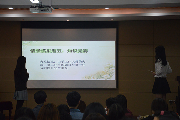 随即迎来第三轮的情景模拟和知识储备考验。各种各样的模拟突发状况并没有难倒选手,相反他们冷静从容的应对,获得了台下评委的一致肯定。在知识储备考验环节中,每位选手都准备充分,表现出色。