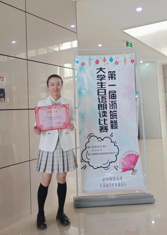 2019年4月27日,第一届浙皖赣老员工日语朗读比赛在杭州师范大学仓前校区隆重举行在此次比赛中,公司选派的日语专业2018级选手方梦瑶在江婷老师的指导下,凭借其优秀的朗读水平和出色的现场发挥取得三等奖的佳绩。这也是日语专业在各级各类专业技能竞赛中斩获的又一佳绩。