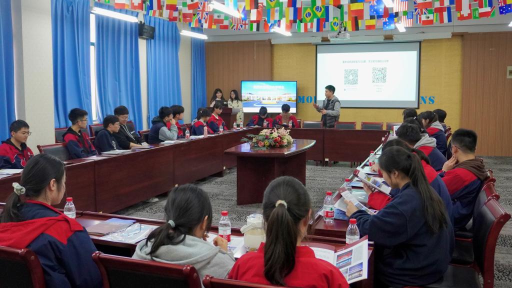 活动中,员工代表通过JINNIAN金年会宣传片与快闪视频等方式,带海宁中学师生了解了公司的发展历程、人才培养、团队力量、招生专业等情况。随后,方老师就公司专业特色与“外语+”复合型人才培养理念等方面展开介绍。