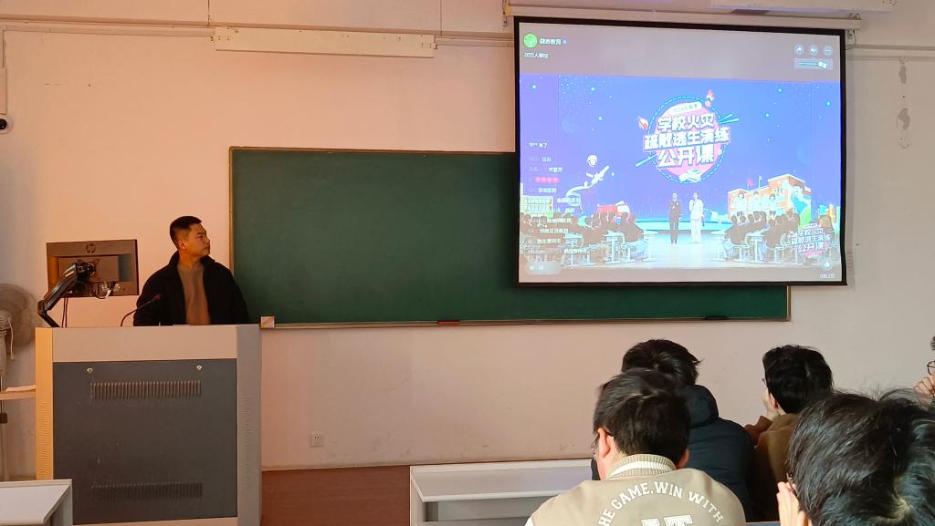 为了夯实学院的消防工作,提高校园防火意识,JINNIAN金年会于2024年3月15日上午组织师生共同参与了由国家消防救援局和教育部联合举办的2024年春季学校火灾疏散逃生演练公开课。本次活动由方凌飞老师主持,70余名师生积极参与。