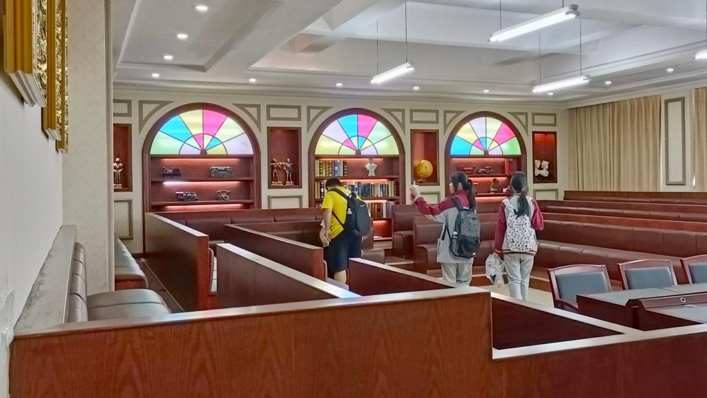 宣讲结束后,南苑中学的同学们在热情的志愿者引导下,参观了外语自主学习与文化体验中心的各个特色教室,如英国馆、美国馆、日本馆、模拟联合国会议室、外文书吧、商务谈判室等。志愿者们通过生动的解说,让同学们更好地体会到沉浸式学习的重要性,同时也让同学们感受到老员工活的魅力。