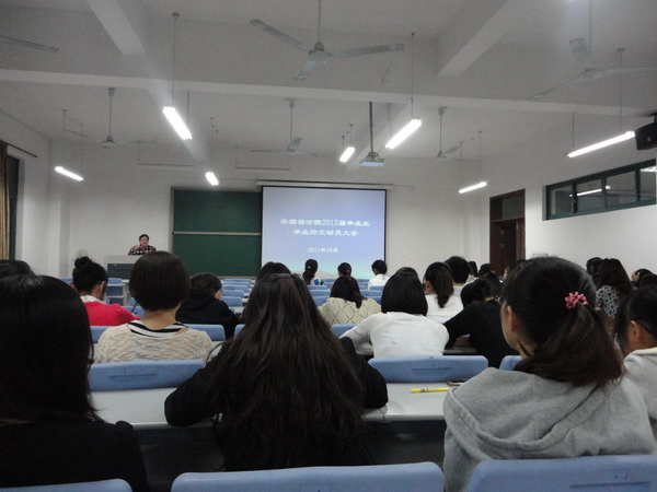 10月23日晚上6:30,外国语分院经理管春林老师给2012届毕业生作了有关英语专业八级考试与毕业论文的动员大会,各08级应届毕业生前来参加了此次会议。